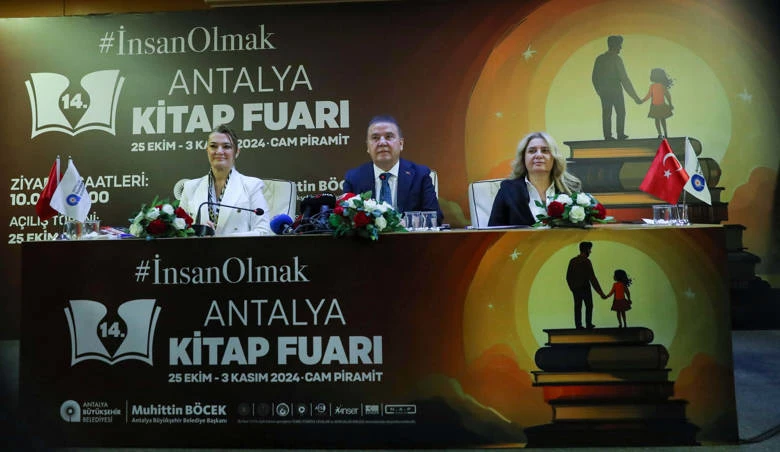 14. Antalya Kitap Fuarı öncesinde düzenlenen basın toplantısında konuşan Antalya Büyükşehir Belediye Başkanı Muhittin Böcek, Antalya Kitap Fuarı’nı belediye eliyle gerçekleştirilmiş en büyük kitap fuarı konumuna ulaştırdıklarını söyledi. Başkan Böcek, “Bu yıl, özellikle son dönemlerde yaşadığımız kadınlara, çocuklara, hayvanlara, doğaya, hatta yeni doğan bebeklere kadar uzanan kan dondurucu vahşetler nedeniyle kendimizi, insanlığımızı sorgulamak, insanlığa çağrı yapmak amacıyla “İnsan Olmak”, temasıyla karşınıza çıkıyoruz. 271 yazarımızı ve 225 ulusal ve uluslararası yayınevini 14. Antalya Kitap Fuarımızda ağırlayacağız. Değerli İlker Başbuğ onur konuğumuz olacaktır” dedi.
