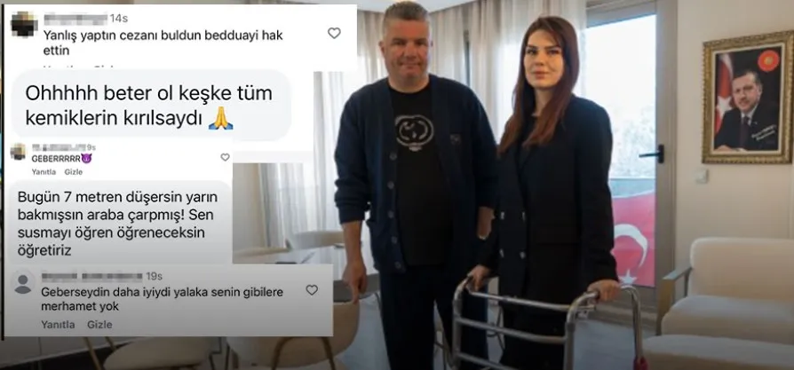 Bu linçler neler? Evet, küfür, hakaret vesaire, beddualar. Bunlar geliyor. Fakat bedduaların sınırı aşıldı. ’Keşke ölseydin düştüğün yerde’, ’Keşke felç kalsaydın’, ’Daha beter ol inşallah.’ Mesela sondan iki önceki paylaştığım postumda da mevcut. Artık başa sabitliyorum. ’Bütün kemiklerin kırılsın inşallah.’ Hatta bu süreçte ben şöyle bir yorum da aldım. Mesaj olarak değil gayet aleni bir şekilde bunu postun altında yorum yapabiliyorlar. ’Bugün 7 metreden bir kazayla düşersin, yarın bakmışsın araba çarpmış.’" dedi.