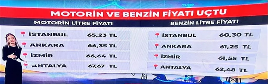 Antalya'da benzinin litresi 62,48 TL olurken, motorinin litresi 67,67 TL'den satılmaya başlandı.