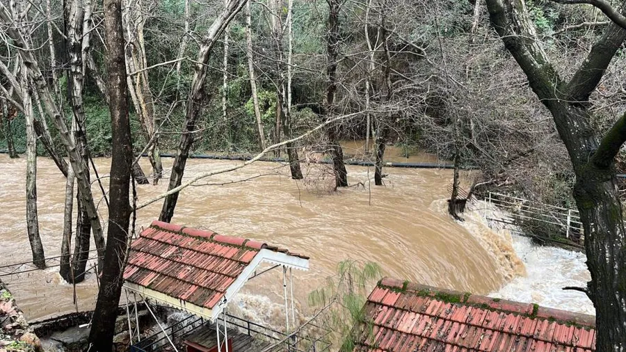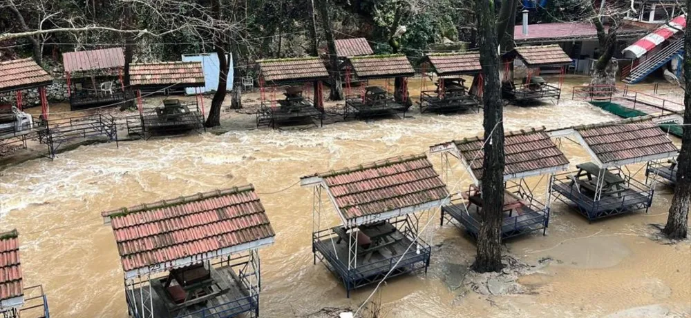 Alanya'nın Oba Mahallesi Alacami çevresinde dün akşam etkili olan sağanak yağışın ardından Oba Çayı taştı. Kısa sürede debisi yükselen çayın taşmasıyla birlikte dere yatağına yakın iki işletmeye ait çardaklar sular altında kaldı. İşletmelerde hasar meydana gelirken, yaşanan su baskını dron ile görüntülendi.
