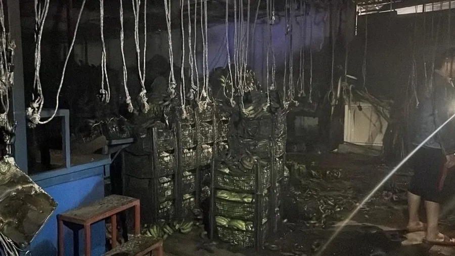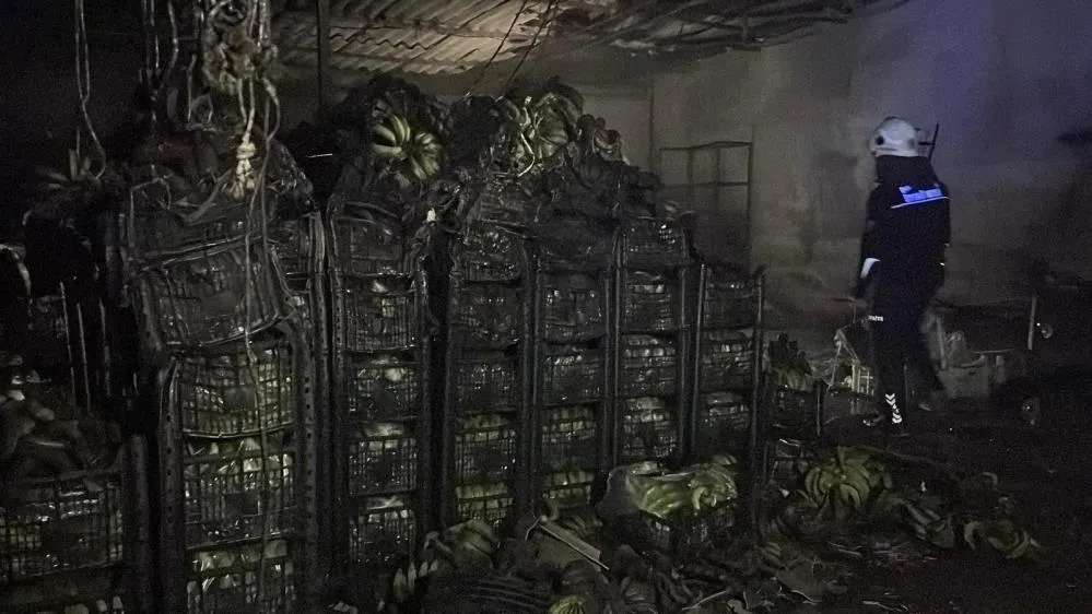 ALANYA'DA MUZ SARARTMA TESİSİNDE YANGIN.. TONLARCA MUZ ZARAR GÖRDÜ