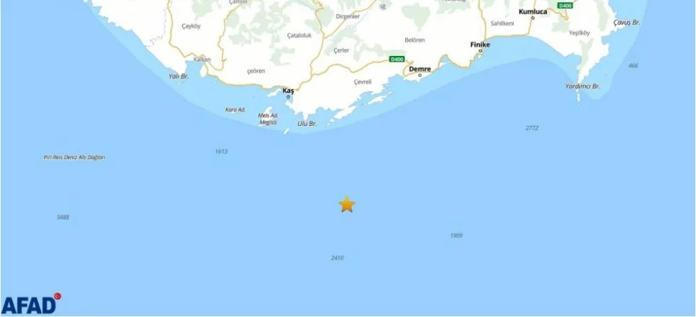 AFAD verilerine göre, saat 11.18'de Kaş ilçesi açıklarında 3.8 büyüklüğünde deprem meydana geldi. Deprem, kıyıdan 26,5 km uzaklıkta ve 20,3 km derinlikte olduğu belirtildi.