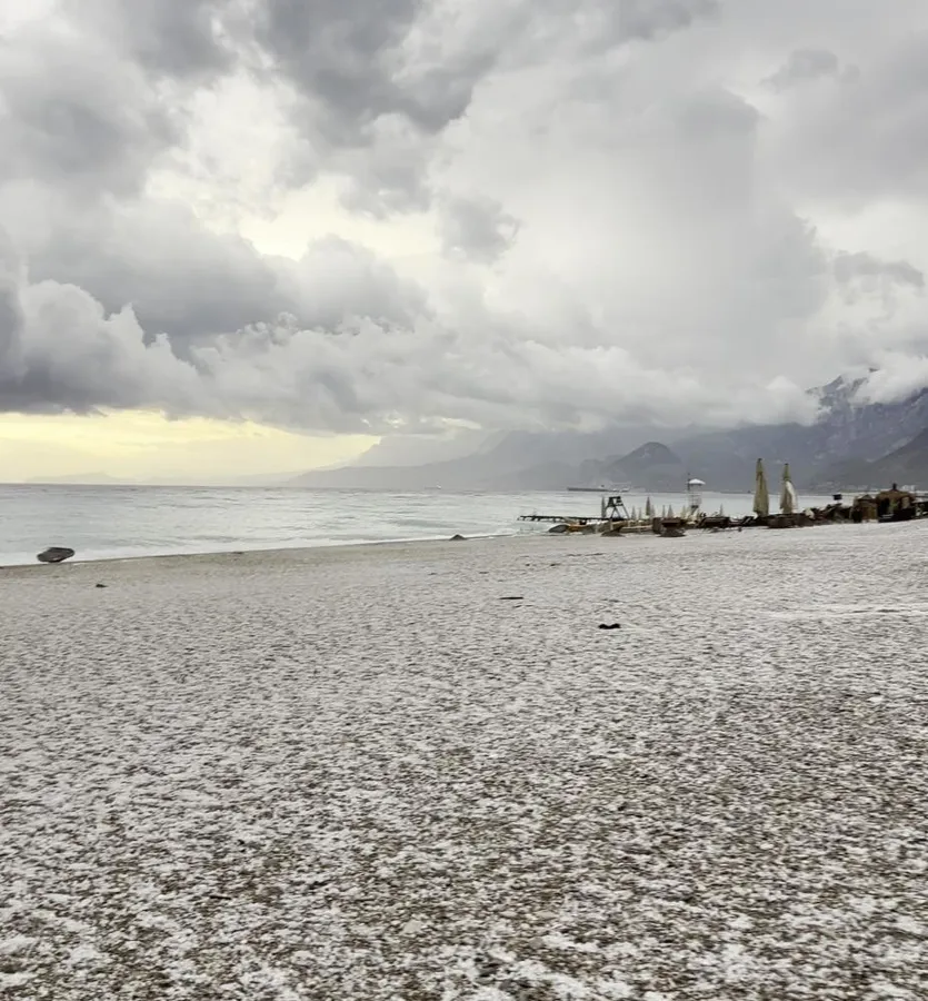 KONYAALTI SAHİLİ BEYAZA BÜRÜNDÜ
