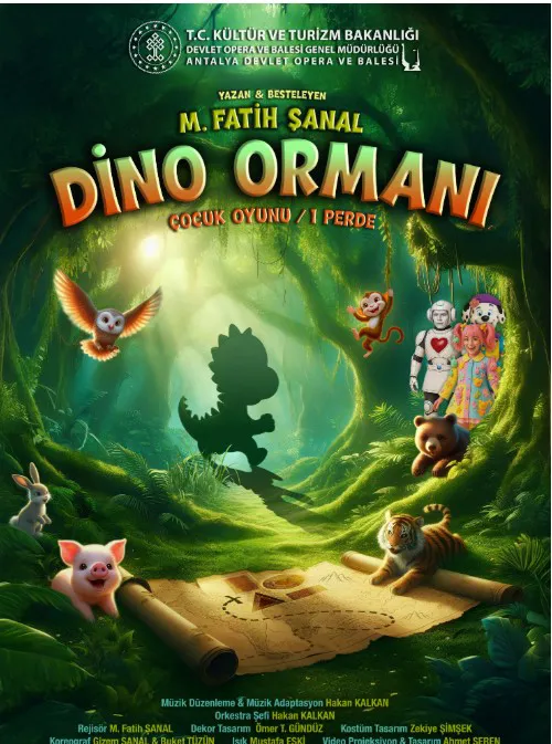 Antalya Devlet Opera ve Balesi, çocukların hayal gücünü, doğa sevgisini ve öğrenme isteğini bir araya getiren tek perdelik müzikal 'Dino Ormanı' ile dünya prömiyerine hazırlanıyor. Eser, 18 Kasım Salı günü saat 11.00 ve 14.00 seanslarında küçük sanatseverlerle buluşacak. Son provaları büyük heyecanla sürdürülen yapım, 18-25 Kasım tarihlerinde aynı saatlerde sahnelenecek.