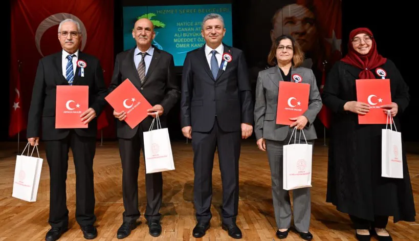 Konuşmasının ardından Vali Hulusi Şahin, eğitim meşalesini uzun yıllardır azim ve fedakârlıkla taşıyan emekli öğretmenler Hatice Ateş, Canan Atik, Ali Büyükkök ve Ömer Kandil’e Hizmet Şeref Belgelerini takdim etti. Vali Şahin daha sonra 24 Kasım Öğretmenler Günü dolayısıyla düzenlenen Resim, Şiir ve Kompozisyon yarışmalarında dereceye giren öğrencilere ödüllerini verdi.