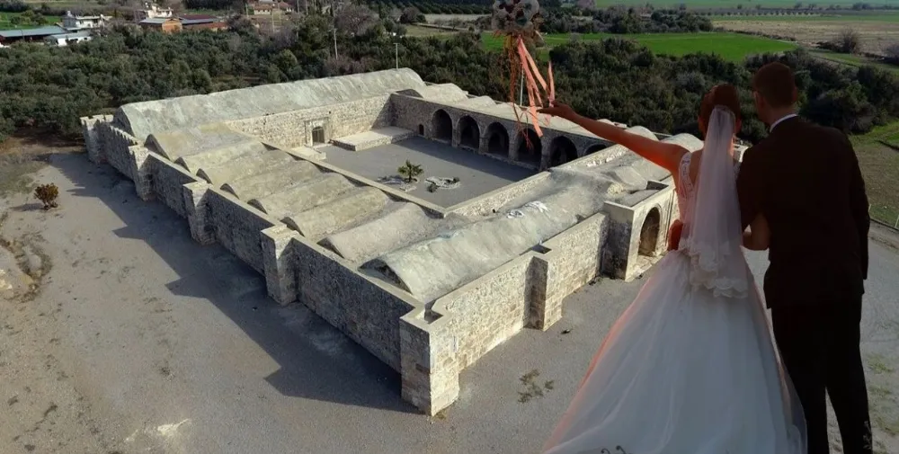 Ücretini ödeyen herkes Selçuklu mirasını taşıyan tarihi handa düğün pastası kesebiliyor.