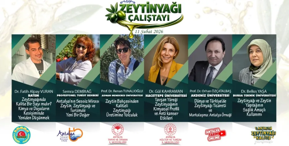 Zeytinyağında markalaşma çalışmalarını sürdüren Antalya, Zeytinyağı Çalıştayı’na ev sahipliği yapacak. 11 Şubat 2026’da alanında uzman akademisyenler ve sektör temsilcileri, zeytin ve zeytinyağını konuşmak üzere Antalya’da bir araya gelecek. Zeytin ve zeytinyağına dair bilimsel, ekonomik ve kültürel başlıkların gündeme geleceği çalıştayda, üretimden tüketime, ticaretten markalaşmaya kadar geniş bir yelpazede sunumlar yapılacak. 1. Antalya Natürel Sızma Zeytinyağı Kalite Yarışması kapsamında düzenlenecek Çalıştay, zeytinyağında kalite bilincinin artırılmasına katkı sunmayı hedefliyor.