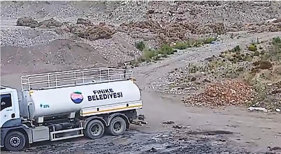 FİNİKE BELEDİYESİ ATIKLARI AÇIK ALANA DÖKTÜ