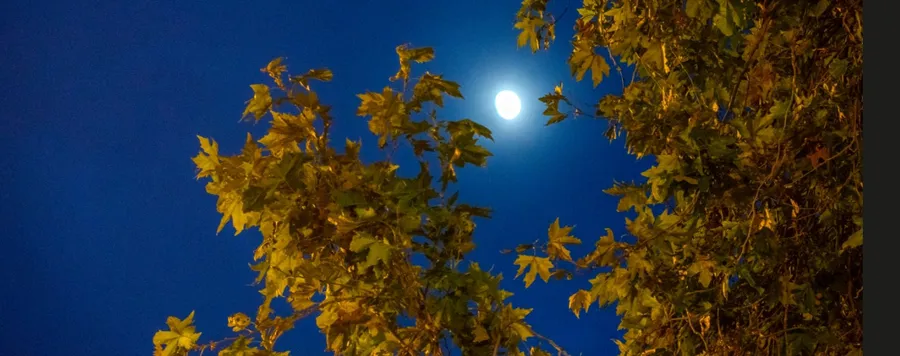 Günün sona ermesiyle Beydağları ardında kaybolan güneş yerini ağaçlar arasından yükselen aya bıraktı. /TRTHABER - Ali Çilesizoğlu