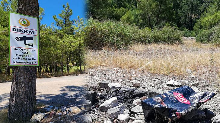 Konyaaltı ilçesinde ormanda asılı 'Bu ormanlar 7/24 fotokapan ve kamera ile izlenmektedir' uyarı levhasının 15-20 adım uzağında mangal yapanlardan kalan kömür ve atıklar dikkat çekti.