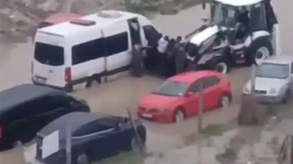 Sarısu Mahallesi’nde ise su birikintisi nedeniyle yolda kalan bir servis aracındaki çalışanlar mahsur kaldı. Görüntülere yansıyan olayda, servis aracında bulunan çalışanların iş makinesi yardımıyla kepçe kovasına alınarak suyun olmadığı güvenli bir bölgeye bırakıldığı görüldü.