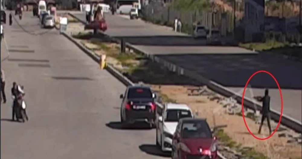 Öte yandan şüphelilerin aracı takip edip pompalı tüfekle ateş etme anları güvenlik kameralarına saniye saniye yansıdı.