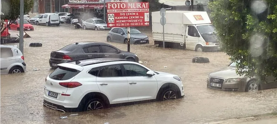 Antalya'nın Aksu ilçesinde bugün öğle saatlerinde aniden bastıran sağanak yolları adeta göle döndürdü. Sağanak nedeniyle bazı araçlar yolda mahsur kalırken, sürücüler ve vatandaşlar su giderlerini açmak için çaba harcadı. Giderlerin açılması ve su tahliye işlemi sonrası sular çekildi.