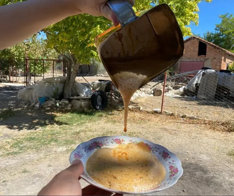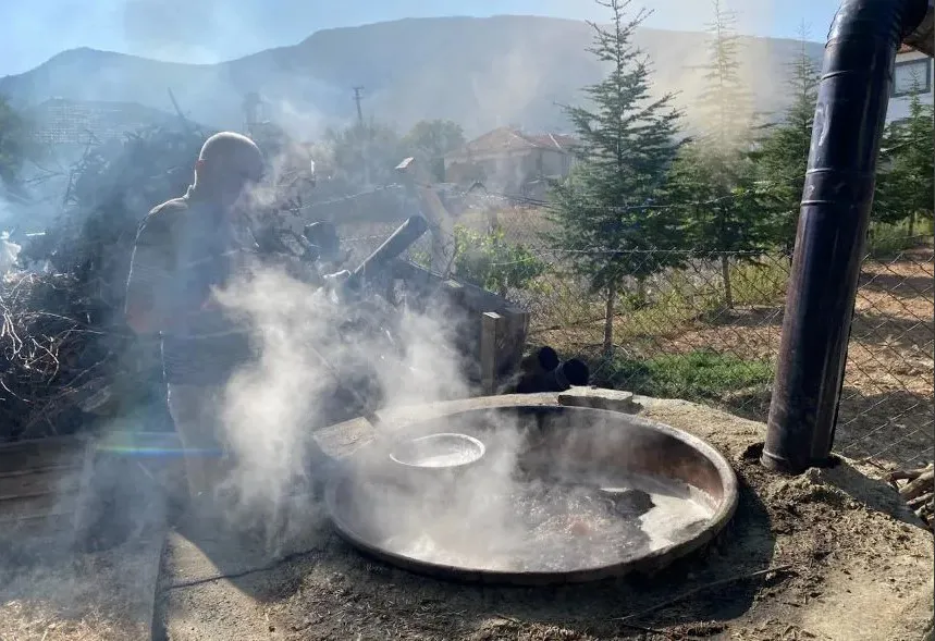Üzümün tüm özü çıkarılarak pekmez yapımına uygun hale getiriliyor. Sıkılan üzüm suları, geleneksel yöntemlerle odun ateşinde kaynatılıyor. Yaklaşık beş saat süren bu işlem sırasında, odun ateşi kullanılarak kontrollü bir şekilde yoğunlaştırılan üzüm suyu, pekmeze dönüşüyor. Üretim sürecinde odun ateşi kullanılması, pekmeze doğal bir aroma katarken, aynı zamanda bölgedeki geleneksel yöntemlerin de devam ettirilmesini sağlıyor.