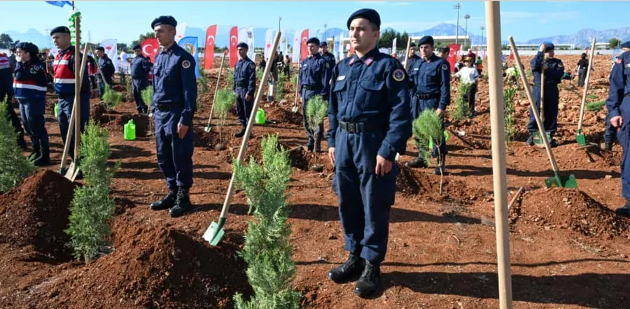 Antalya Orman Bölge Müdürlüğü tarafından 11 Kasım Milli Ağaçlandırma Günü kapsamında düzenlenen fidan dikim etkinliği, Antalya Valisi Hulusi Şahin’in katılımıyla gerçekleştirildi. “Yeşil Vatan Seferberliği” sloganıyla düzenlenen etkinlikte, Döşemealtı İlçesi Yeşilbayır Mahallesi sınırlarında bulunan 4,5 hektarlık orman alanına defne, harnup, fıstıkçamı ve servi türlerinden oluşan 8.000 adet fidan toprakla buluşturuldu. Antalya genelinde ise 15 farklı lokasyonda toplam 121,3 hektarlık orman alanında 174.300 fidan dikildi.
