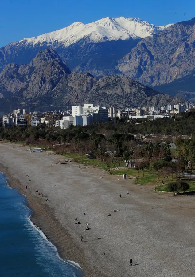 Antalya'da yağış ve fırtına nedeniyle günlerdir evlerine kapanan vatandaşlar, güneşli havayı fırsat bilip soluğu Konyaaltı Sahili'nde aldı. Hafta içi olmasına rağmen Antalyalılar turkuaz rengi deniz ve karlı dağ manzarası eşliğinde güneşli havanın tadını çıkardı.