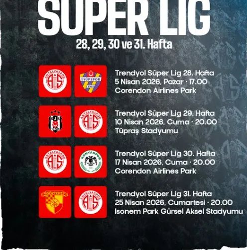 Bu dört maçlık seride, özellikle evindeki Eyüpspor ve Konyaspor maçlarında alınacak sonuçlar, kırmızı-beyazlıların lige tutunmasına adına son derece önemli olacak. Antalyaspor, bu iki karşılaşmadan eğer 3’er puan alırsa ligde kalmak adına büyük bir sınavı geçmiş olacak. Eğer bu maçlarda puan kayıpları yaşanırsa akrepleri karanlık günler bekliyor demektir.