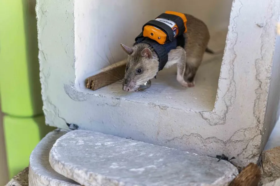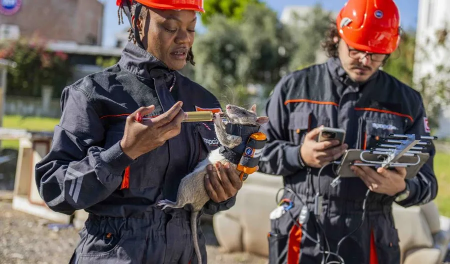 Yaklaşık 3 yıllık eğitim sonunda insan kokusunu ayırt edebilen Afrika keseli sıçanlar, sırtlarına takılan GPS ve kamera sistemiyle ulaşılması zor noktalardaki arama kurtarma çalışmalarına önemli katkı sağlaması bekleniyor