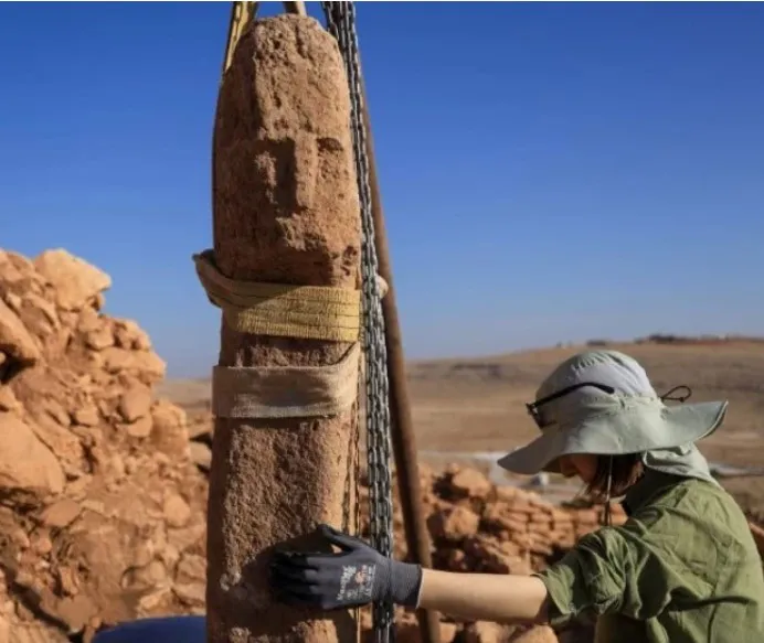Dikilitaşın üst kısmında yer alan yüz betimi; keskin hatları, derin göz çukurları ve küt biçimli burnuyla Karahantepe’de daha önce bulunan insan heykelleriyle benzer bir üslup taşıyor. Bu keşif, Neolitik insanın yalnızca teknik ustalığını değil, kendini ifade etme biçimini ve soyut düşünme gücünü de ortaya koyuyor.