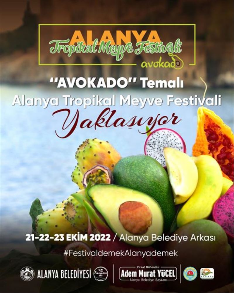 Türkiye’nin tropikal meyve cenneti olan Alanya’nın bereketli topraklarında yetişen ürünlerin ve üreticilerin yer alacağı festival, bu sene ilk kez ‘Avokado’ temasıyla düzenlenecek olup avokadonun yetiştiriciliğinden işlenmesine ve gastronomi, hediyelik, kozmetik alanında kullanımına kadar pek çok sektörü bir araya getirecek.