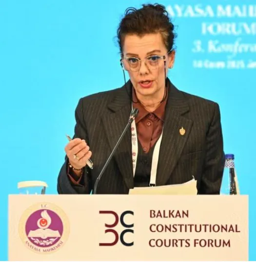 Arnavutluk Anayasa Mahkemesi Üyesi Sonila Bejtja, konuşmasında Balkan ülkelerinin Avrupa standartlarıyla uyum sürecine değindi. Bejtja, toplantının önemli bir konuya odaklandığını belirterek, "Bizler, Anayasa'nın koruyucuları olarak, hem kendi iç hukuklarımızda güvence altına alınan temel hakları koruma hem de bu hakların uluslararası insan hakları hukukunun gelişen standartlarıyla uyumunu sağlama gibi ikili bir sorumluluk taşıyoruz" dedi.