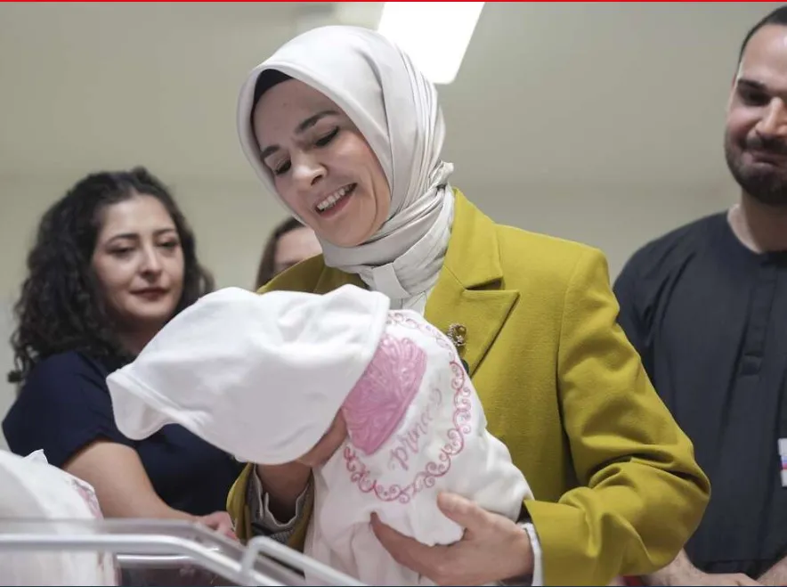 Bilkent Şehir Hastanesi'nde normal doğumla üçüncü bebeğini dünyaya getiren anne Gülsüm Kurt'u ziyaret eden Bakan Göktaş, bebeğin aileye "bereket ve huzur getirmesi" temennisinde bulundu.