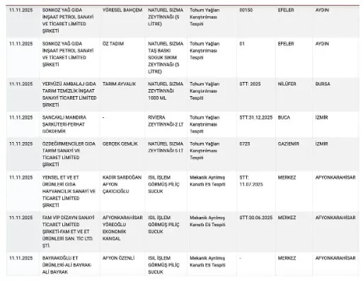 Tarım ve Orman Bakanlığı taklit-tağşiş listesini ifşa etti. Bakanlığın listesinde pek çok kentten pek çok marka yer aldı.