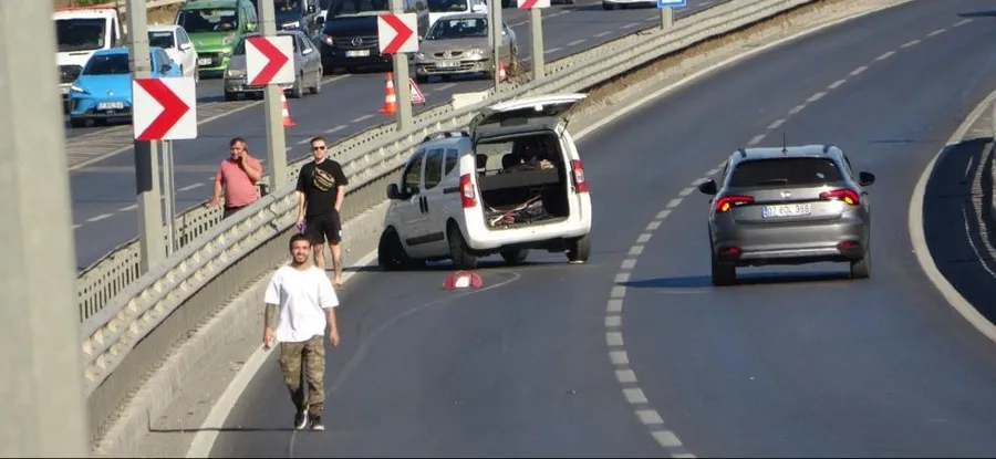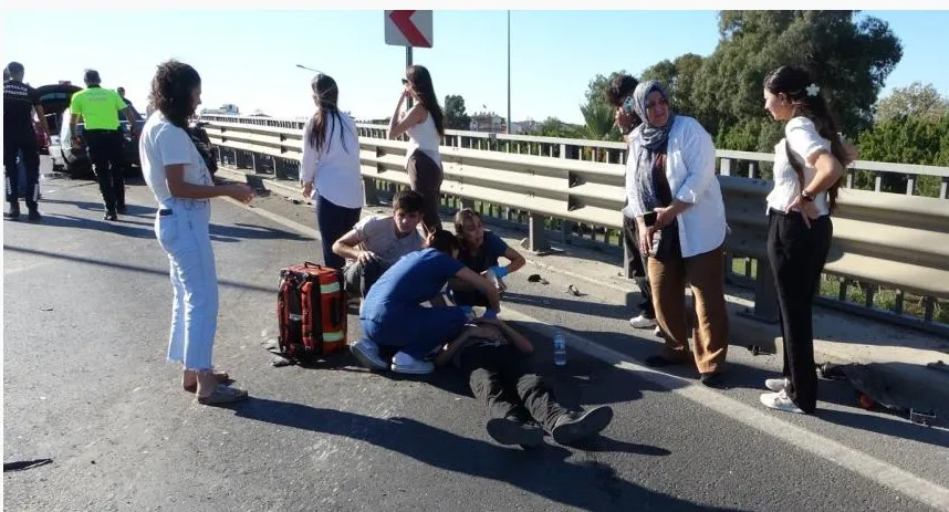 Diğer taraftan otomobilin bariyerlere çarpması sırasında köprülü kavşağın diğer şeridine savrulan büyük bir parçasının üzerinden geçen Ramazan B.'nin kullandığı 07 HTG 14 plakalı hafif ticari aracın sol ön tekeri patlarken, sürücü aracını yaklaşık 800 metre uzaklıkta durdurabildi. Kendisini iyi hissetmeyen hafif ticari araç sürücüsü 112 sağlık ekibinin olay yerindeki müdahalesinin ardından ambulansla hastaneye götürüldü. Parçalardan zarar gören bir başka araç sürücüsü ise acil bir işi olduğunu belirterek işlem yaptırmadan yoluna devam etti.