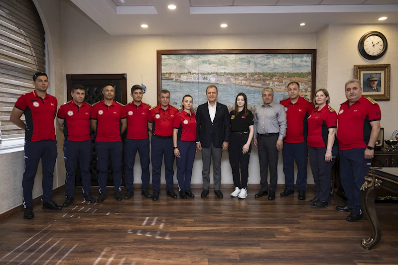 Başkanlık makamında gerçekleştirilen ziyarette Mersin Büyükşehir Belediyesi Genel Sekreteri Olcay Tok, İtfaiye Dairesi Fuat Tuğluoğlu ve itfaiye personeli yer aldı.