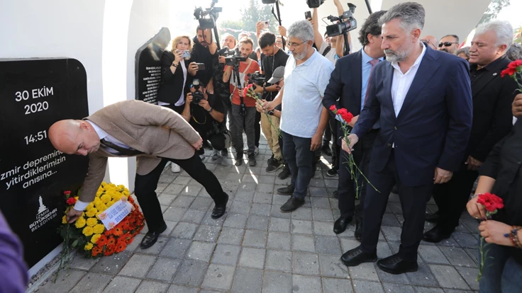 30 Ekim depreminde hayatını kaybeden 117 kişi İzmir’de düzenlenen iki ayrı törenle anıldı. İzmir Büyükşehir Belediyesi tarafından depremzedeler için Türkiye’de ilk kez İzmir’de hayata geçirilen Halk Konut projesinin ilk uygulaması olan Dilber Apartmanı’nın önündeki törende konuşan Başkan Tunç Soyer, “Dilber Apartmanı ile başlayan Halk Konut projesinin büyüdüğünü ve bu noktaya geldiğini görmek gurur verici. Mart ay içerisinde anahtarları teslim edeceğiz” dedi.