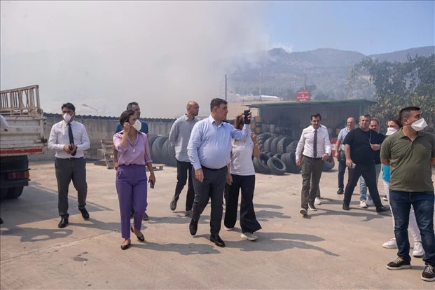 İzmir Büyükşehir Belediye Başkanı Dr. Cemil Tugay, İl AFAD Merkezi’nde, Vali Yardımcısı İsmail Çorumluoğlu’un başkanlığında yapılan toplantıya katıldı. Tugay, daha sonra yangın bölgesinde incelemelerde bulundu. Karşıyaka Örnekköy Küçük Sanayi Sitesi ve çevresinde süren yangın hakkında bilgi alan Tugay, “Süren yangınlar, canımızı acıtıyor. Ekiplerimizin tümü sahada yangını kontrol altına almak için çabalıyor. Yurttaşlarımızdan ricam yangınlara karşı çok daha dikkatli olsunlar” dedi.