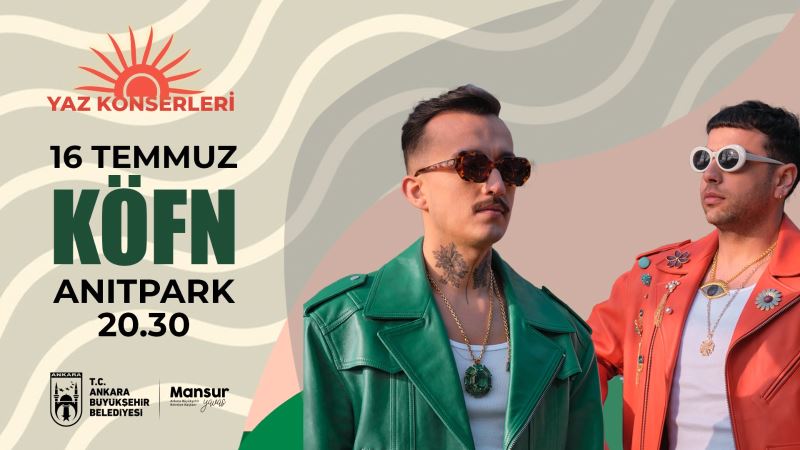 Son dönemin en popüler gruplarından olan KÖFN en sevilen şarkılarını 16 Temmuz Pazar günü Anıtpark’ta Başkentlilerle birlikte söyleyecek. Konser saat 20.30’da başlayacak.