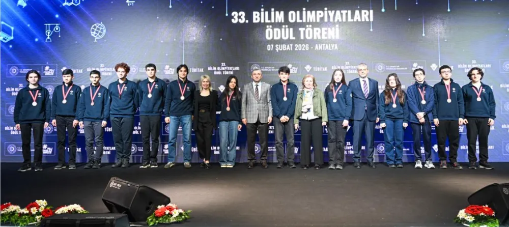 Ulusal ve uluslararası bilim olimpiyatlarında başarı elde eden öğrencilerin ödüllendirildiği “33. Bilim Olimpiyatları Ödül Töreni”, Antalya’da gerçekleştirildi. Törende, 2025 yılı bilim olimpiyatlarında dereceye giren; 38 altın, 77 gümüş ve 110 bronz madalya kazanan toplam 225 öğrenciye ödülleri, Antalya Valisi Hulusi Şahin ve protokol üyeleri tarafından takdim edildi.