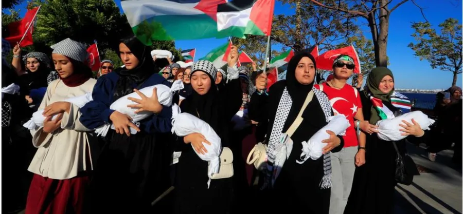 Antalya Kudüs Platformu'nun çağrısı ile Gazze'de yaşanan katliama dikkat çekmek amacıyla yürüyüş düzenlendi. Ellerinde Türkiye ve Filistin bayrakları bulunan binlerce kişi, Konyaaltı Olbia meydanında toplandı. Yürüyüşe karadan motosiklet gruplarının yanı sıra denizden de tekneler eşlik etti. Ellerinde Gazze'de hayatını kaybeden bebek ve çocukları temsil eden kefene sarılmış bebek figürleri bulunan grup üyeleri, ‘Antalya'dan Gazze'ye direnişe bin selam' ve ‘Çocuklar ölürken sessiz kalınmaz' sloganları attı. Konyaaltı Kent Meydanı'na kadar olan yaklaşık 2 kilometrelik yürüyüşe katılanlara çevredeki vatandaşlar da destek verdi.
