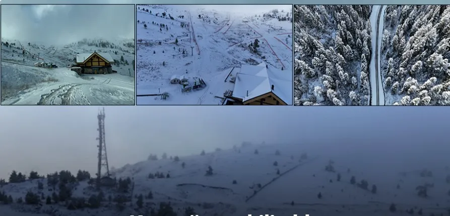 Bolu’da dün gün boyu aralıklarla etkili olan yağmur yüksek kesimlerde yerini kar yağışına bıraktı.ZYağan karla birlikte Sarıalan Yaylası, Aladağlar ve Kartalkaya kayak merkezi beyaz örtüyle kaplandı. Kartpostallık görüntülerin oluştuğu kentin yüksek kesimleri dronla görüntülendi.