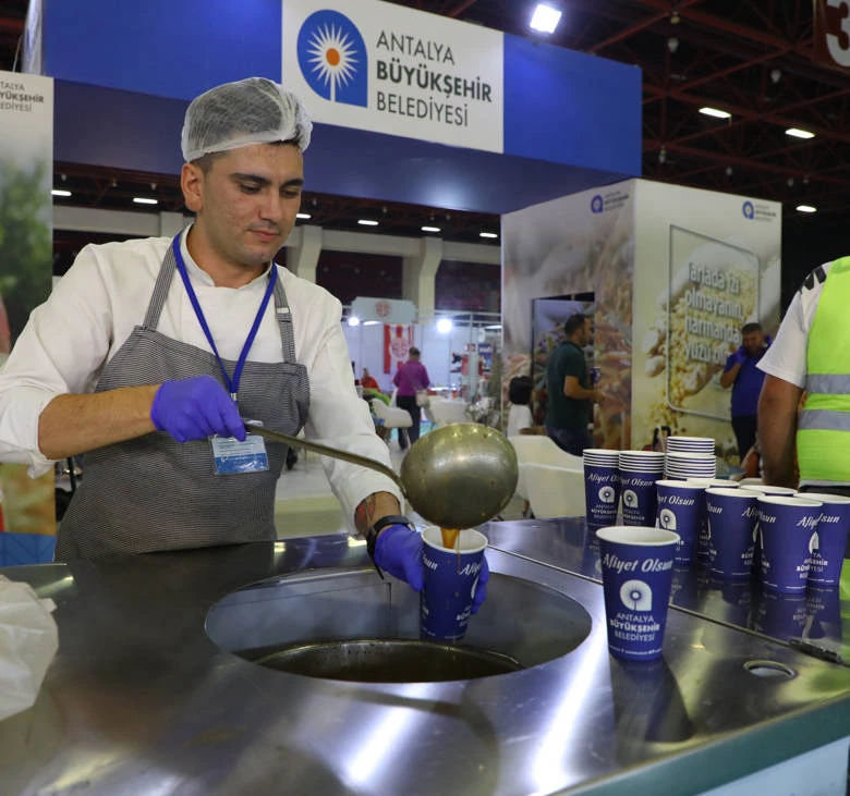Antalya Büyükşehir Belediyesi, bu yıl 13’ncüsü düzenlenen Yöresel Ürünler Fuarı’nda (YÖREX) standında sergilediği yerel ürünler ile ziyaretçilerin akınına uğruyor. Standı ziyaret eden vatandaşlara tarhana çorbası ikramında bulunuluyor.