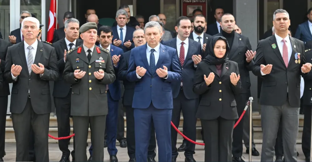 Vali Hulusi Şahin tarafından şehitlik anıtına çelenk sunulmasının ardından saygı duruşunda bulunuldu ve saygı atışı gerçekleştirildi. İstiklal Marşı’nın okunmasının ardından günün anlam ve önemine dair konuşmalar yapıldı. Törenin devamında Vali Hulusi Şahin tarafından şeref defteri imzalandı.