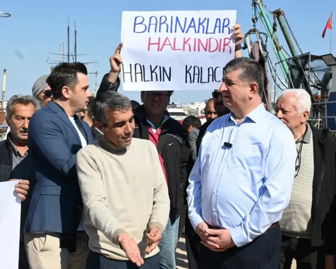 Daha önce de defalarca paylaştık. Burada iki balıkçı kooperatifi var. Bu kooperatiflerle ilgili bir süreç başlatıldı ve buraya kayyum atandı. İlk etapta denildi ki: “Bu kooperatiflerin kiracılık vasfı kalmadı, burada işleri bitti.” Davalar açıldı ve mahkeme, iki kooperatifin de buradaki kiracılığının devam ettiğine karar verdi. Bu birinci zaferdir.