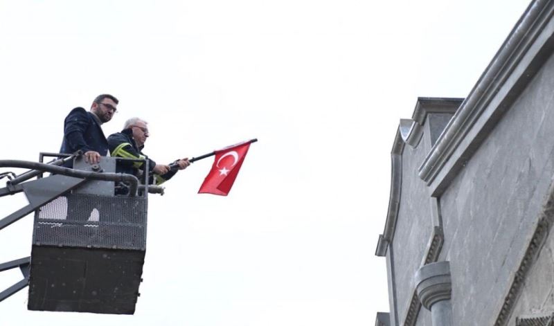 BELEDİYE BAŞKANI BAYRAĞI RESTORASYONU TAMAMLANAN MÜZE BİNASINA DİKTİ