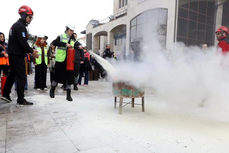 Belediye hizmet binası önünde, personele yönelik uygulamalı yangın söndürme tatbikatı da yapıldı. Tatbikat, olası acil durumlara karşı farkındalığı ve müdahale kabiliyetini artırmayı hedefliyor.