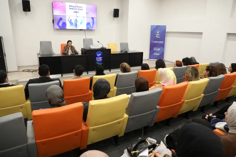 Eyüpsultan Belediyesi, 5 Aralık Dünya Kadın Hakları Günü'nde 'Kadının Yasal Hakları' konulu bir panel gerçekleştirdi. Panelde, kadınların hukuki hakları ve başvuru mekanizmaları ele alındı.