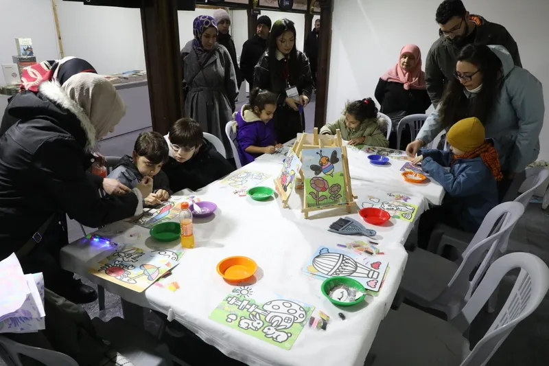 Çocuk Sanat Atölyeleri'nde kum boyama, hat, ebru ve taş boyama gibi hem eğlenceli hem de el becerilerini geliştirici çalışmalar yapılıyor. Atölye çalışmaları, yetişkinlerin de ilgisini çekiyor.