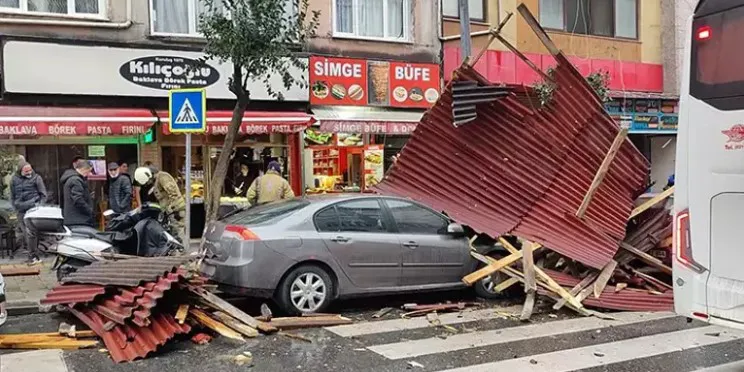 Şiddetli rüzgar İstanbul'da sabah saatlerinde itibaren etkisini gösterdi. Güngören'de de rüzgar nedeniyle 5 katlı iş merkezinin çatısından kopan parçalar karşı binaya çarptı.Ardından sokakta park halinde bulunan 3 otomobilin üzerine düştü. Sokakta yürüyen bir kişinin düşen çatının altında kalmaktan saniyelerle kurtulurken çatının otomobillerin üzerine düşmesi iş yerinin güvenlik kamerasına yansıdı.İhbar üzerine olay yerine polis ve itfaiye ekipleri sevk edildi. Güvenlik gerekçesiyle sokak trafiğe kapatılırken itfaiye ekipleri otomobillerin üzerine düşen çatı parçalarını yol kenarına aldı.