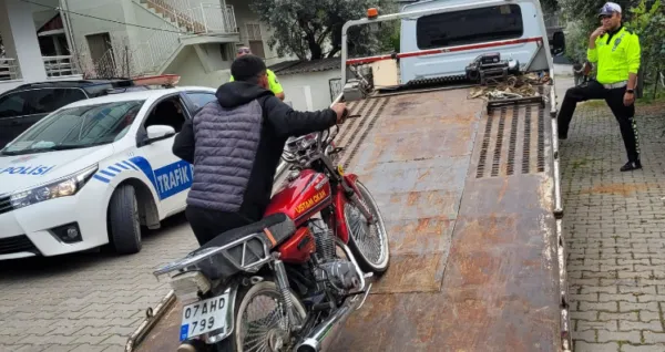 Gazipaşa İlçe Emniyet Müdürlüğüne bağlı Trafik Tescil ve Denetleme Büro Amirliği ekiplerince trafikte aykırı olan sürücülere yönelik denetim gerçekleştirmeye devam ediyor. Bu kapsamda Cumhuriyet Mahallesi Hastane Caddesi üzerinde yaşı küçük motosiklet sürücüsünün açık egzozla çevreye rahatsızlık verdiği ihbarını alan trafik ekipleri, 15 yaşındaki B.D. idaresindeki 07 AHD 799 plakalı motosiklete dur ihtarında bulundu. Polislerin dur ihtarına uymayan sürücü ile ekipler arasında kısa süreli bir kovalamaca yaşandı. Çok geçmeden motosikleti yakalayan ekipler, 15 yaşındaki B.D.’nin ebeveynine yaşı küçük ehliyetsiz şekilde araç kullanmak, kask takmamak ve açık egzoz kullanarak çevreye rahatsızlık vermek gibi farklı ihlallerden dolayı toplamda 37 bin TL cezai işlem uyguladı. Motosiklet ise trafikten men edilerek çekici yardımıyla otoparka çekildi.