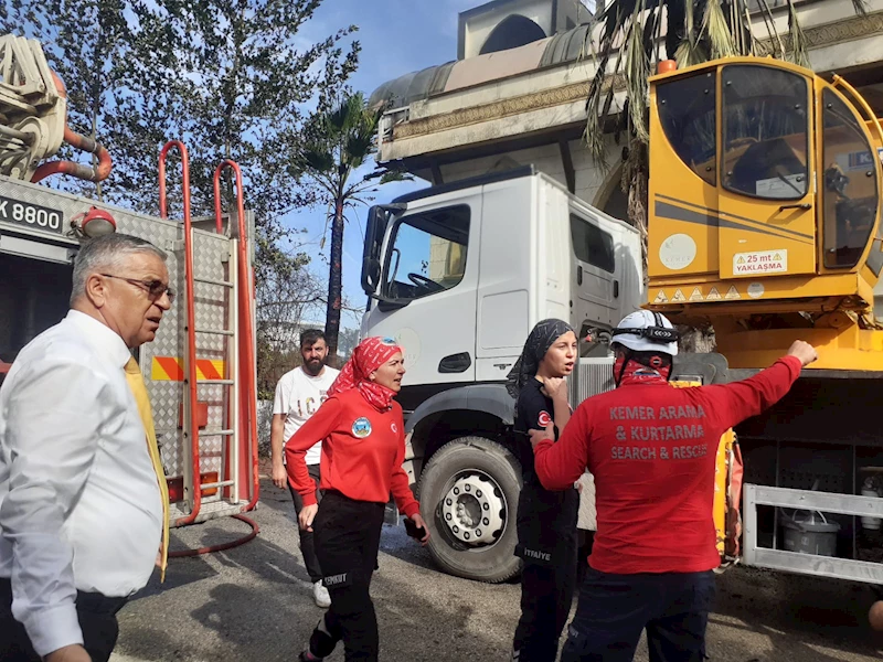 Kemer Belediyesi ekipleri de arazözle itfaiye ekiplerine destek verdi.