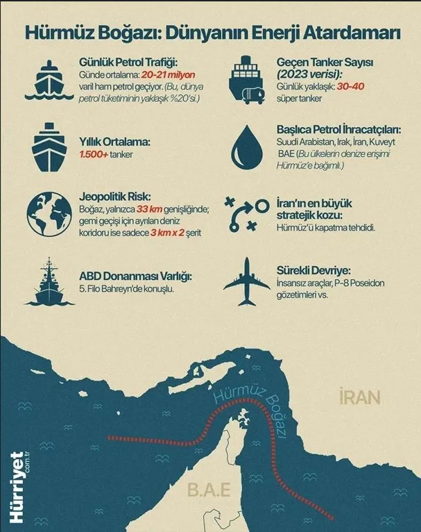 İsrail ve ABD’nin İran’a yönelik saldırıları sonrası gözler Basra Körfezi’nin kilit noktası Hürmüz Boğazı’na çevrildi. Tahran’dan gelen “geçiş yasağı” telsizleri küresel enerji hattında alarm zillerini çaldı.