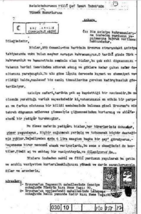 Osmanlı tarihinin önemli savaşlarından "93 Harbi" diye adlandırılan, 1877-1878 Osmanlı-Rus savaşında genç yaşta gösterdiği büyük kahramanlıkla simge haline gelen Erzurumlu Nene Hatun’un savaş sonrası yaşadığı fakirlik ve çaresizlik yılları, Cumhurbaşkanı İsmet İnönü’ye yazdığı dilekçedeki ifadelerle bir kez daha gün yüzüne çıktı.