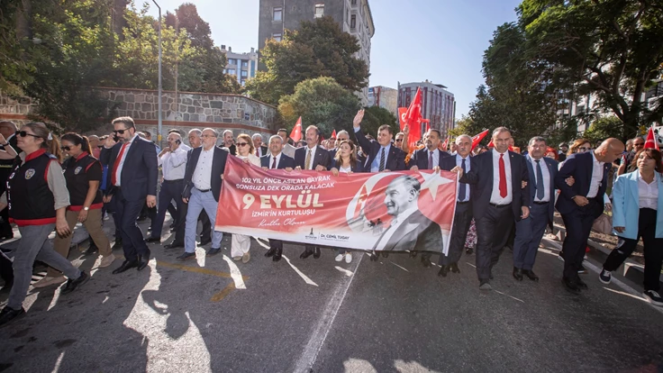 İzmir'de kurtuluşun 102'nci yıl dönümü kutlamaları kapsamında 9 Eylül Zafer Yürüyüşü düzenledi. Türk ordusunun 9 Eylül 1922'de İzmir'e girerken kullandığı güzergah üzerinde düzenlenen yürüyüş, Basmane Karakolu önünden Cumhuriyet Meydanı'na kadar devam etti. Yürüyüşe İzmir Büyükşehir Belediye Başkanı Dr. Cemil Tugay'ın yanı sıra CHP, AK Parti, MHP, İYİ Parti, Demokrat Parti milletvekilleri, siyasi parti temsilcileri, ilçe belediye başkanları, meclis üyeleri, bürokratlar, iş dünyası, sivil toplum örgütlerinin temsilcileri ve binlerce İzmirli katıldı.