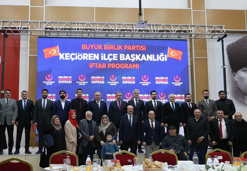 Keçiören Belediye Başkanı Mesut Özarslan, BBP Genel Başkanı Mustafa Destici ile birlikte partinin iftar programına katıldı. Programda Türk-İslam coğrafyasındaki sorunlar ve yerel hizmetler konuşuldu.