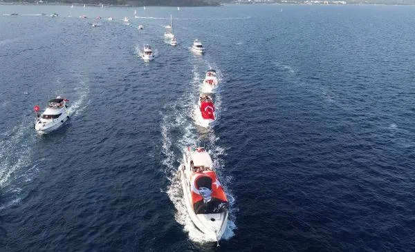 Antalya'nın Kemer ilçesinde Türkiye Cumhuriyeti'nin kuruluşunun 100'üncü yılı kutlamaları kapsamında, 'mavi vatan'da 100 teknenin katıldığı geçiş töreni yapıldı.